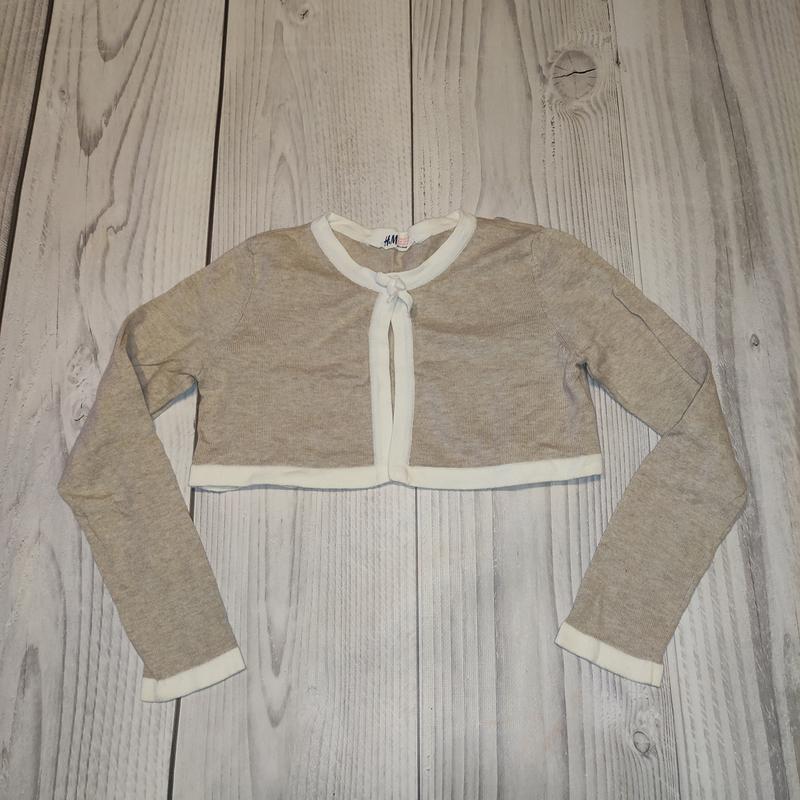 кофта болеро HM.размер 6-8 лет (122-128) по факту ближе к 8 )цвет бежевый с кремовым.состав 100 проц.хлопок.длина 25,рукав 47,в груди 36.застежка 1 пуговица.состояние хорошее. смотрите другие мои объявления