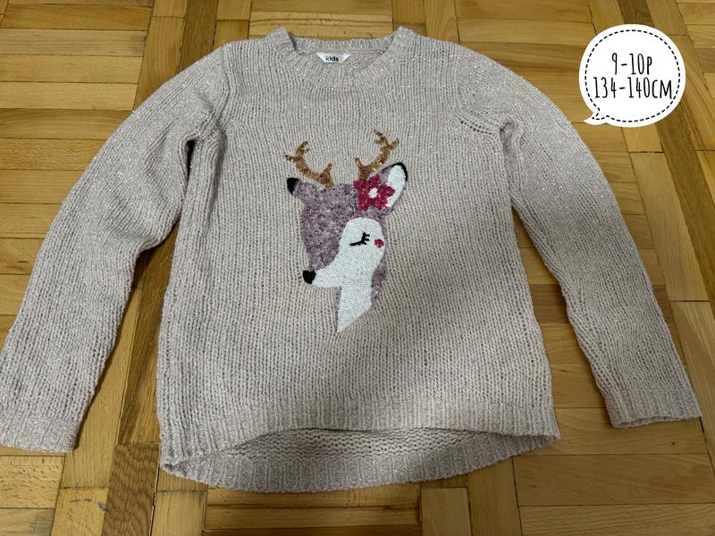 Гарна кофтинка з оленем , тканина з люрексом та олень вишитий паєтками на 9-10 років, 134-140см. В ідеальному вигляді. Заміри при потребі надам. Дивіться інші мої оголошення