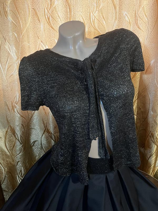 Болеро блискуче , люрекс. Дуже красиве. Стан нормальный. Завязки трошки розійшлись. Ціна символічна, може комусь на один раз одягнути, чи доповнити образ.