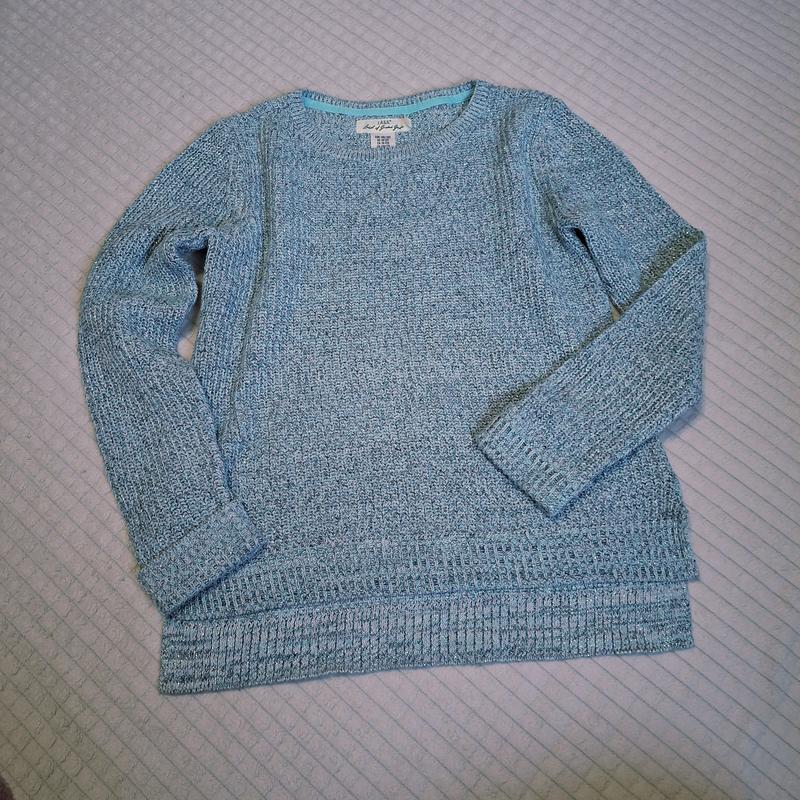 Очень красивая кофтина, зимняя тематика, выглядит морозно. Легкая, дышащая, не колется. Замеры: длина 53см перед/59 спина плечи 34 грудь 44 рукав 55