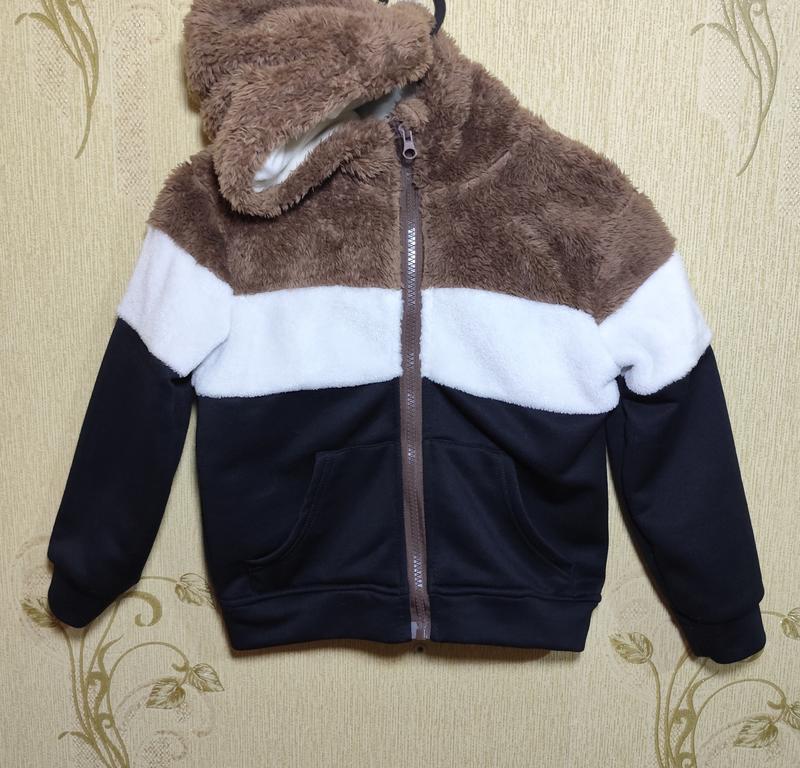 Очень мягкая и теплая кофта на молнии,стан новой вещи,ньансов не имеет, капюшоном утеплен флисом, пог-40 см, длина рукава от горловины -49 см, длина всей кофты -40 см