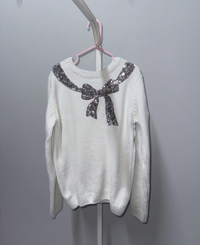 Дуже красива біла кофта свитер для дівчинки з бантом