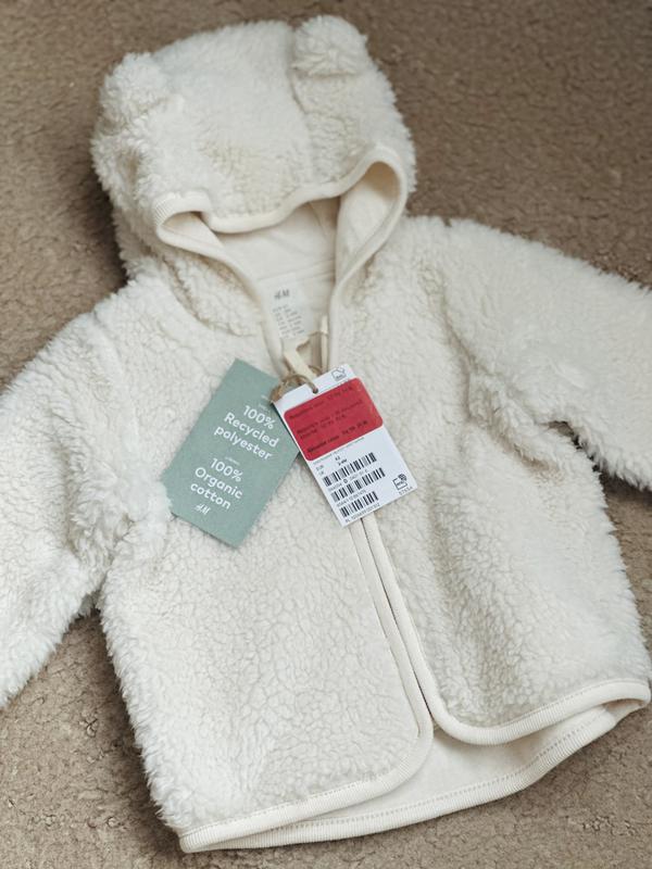 Плюшева тепла кофтинка 3-6міс, H&M молочного кольору. Нова, у використанні не була. Ідеально підійде на осіньо-зимовий період або на прохолодні вечори. Мʼяка, зручна, дуже приємна на дотик.
