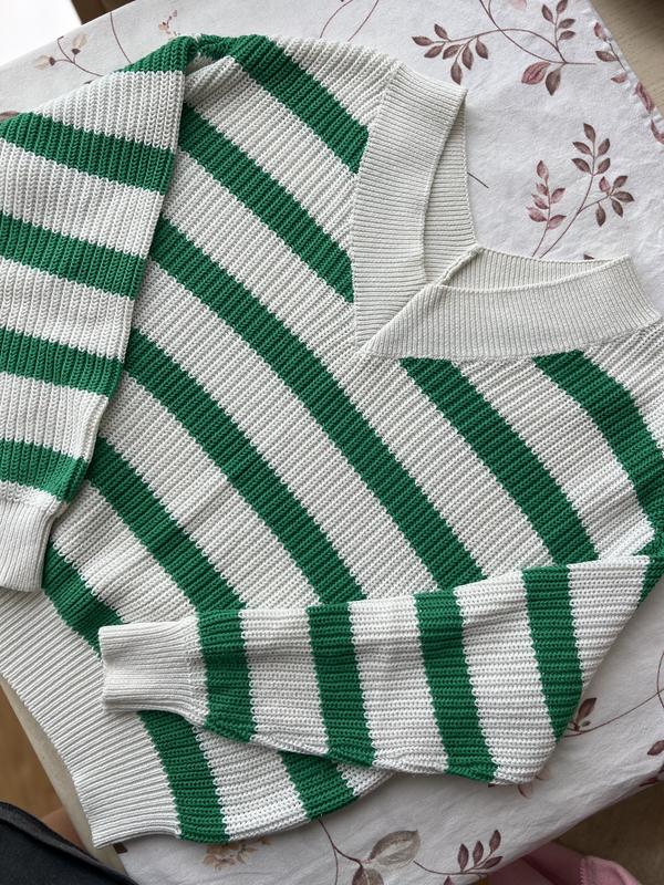 Вʼязаний светр Стан ідеальний, одягався два рази Розмір Л ( мало мірний) Заміри : Довжина 59 см Ширина по низу резинка 33 см, тягнеться до 51 Груди 56см Плече спущене Рукав від шва 51 см від горла 74,5 см