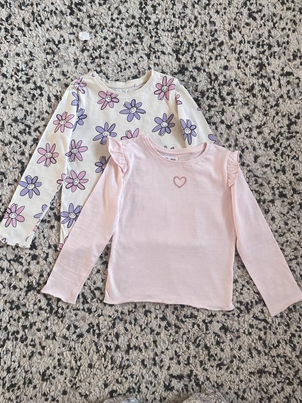 Кофтинки в дуже гарному стані. Та що в квіточки розмір 116, а рожева розмір 122, але вони майже однакові.
