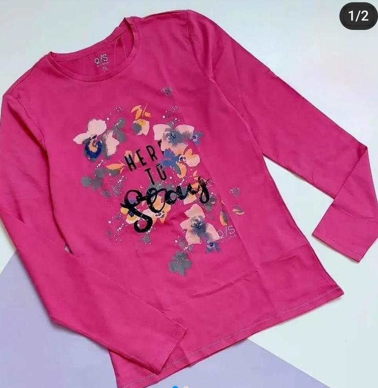 регланчик на девочку в малиновом цвете от брендового производителя s oliver с красивым принтом в размере 152. на 11-12 лет. длина 59 см ДПГ 38 см длина рукава от плеча 54 см состав 100% хлопок