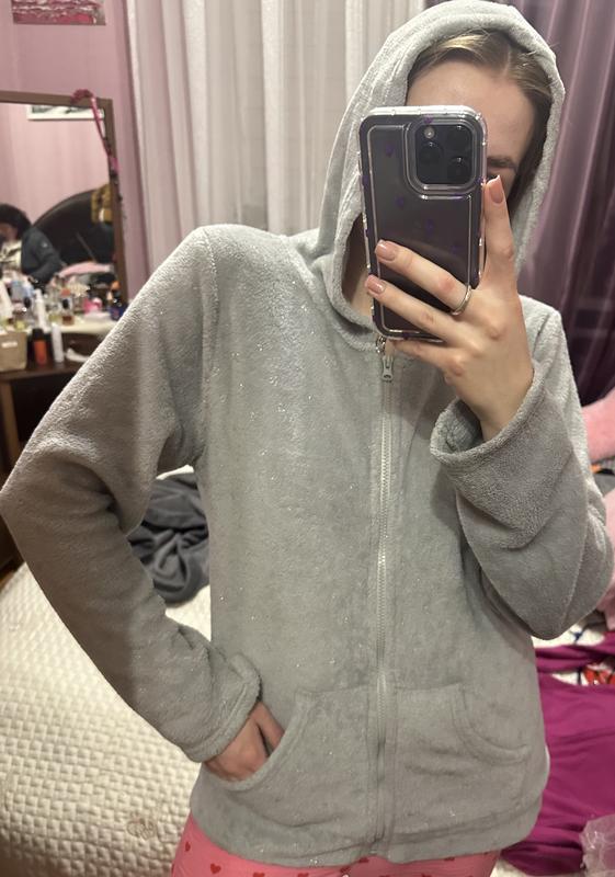 Жіноча тепла кофта на замку,з карманами,капюшоном,з блискітками,розмір пише L,одягнуто на S