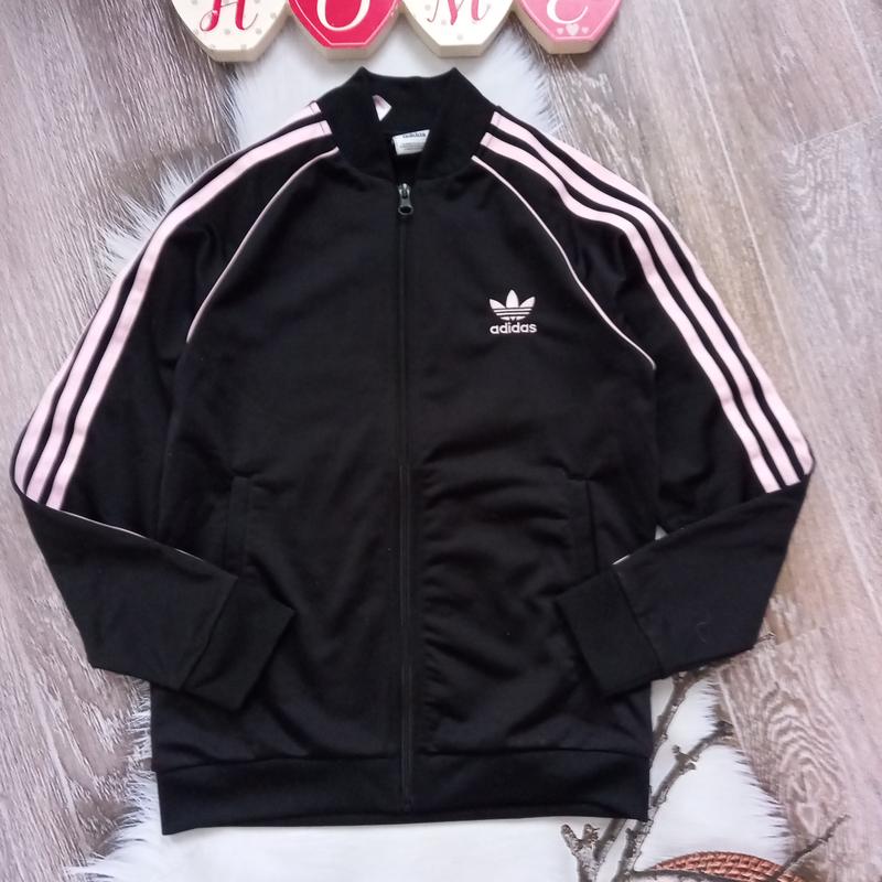 Кофта спортивная Adidas, с логотипом-трилистником на груди. Основной цвет черный, с тремя розовыми полосками вдоль рукавов. Имеет полную застежку-молнию, воротник-стойку и карманы для рук. Стиль: классический спортивный дизайн. Стан идеален. на 11-12 лет. тянется. Замеры ⤵️⤵️⤵️ Длина- 58см Рукав от горловины-65см Пог-44см💗💗💗 пересылаю новой почтой и укрпоткой. есть наложенный платеж по предоплате. более подробно об условиях читайте в описании в разделе "О МЕНЕ "