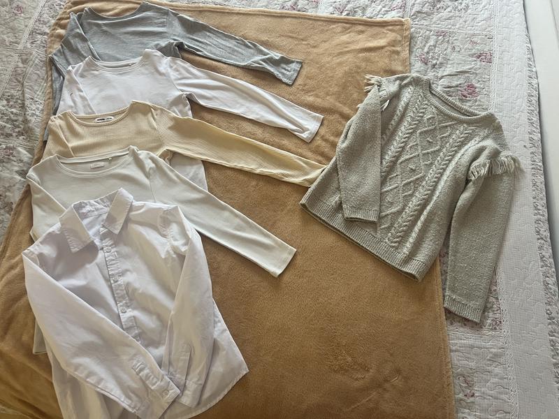 Продам пакетом 6 одиниць: Кофта некст (3 шт. 134 розмір) Кофта sinsay (1 шт. 140 розмір) Рубашка біла (1 шт.) Кофта вʼязана lc waikiki (1 шт. 140 розмір)