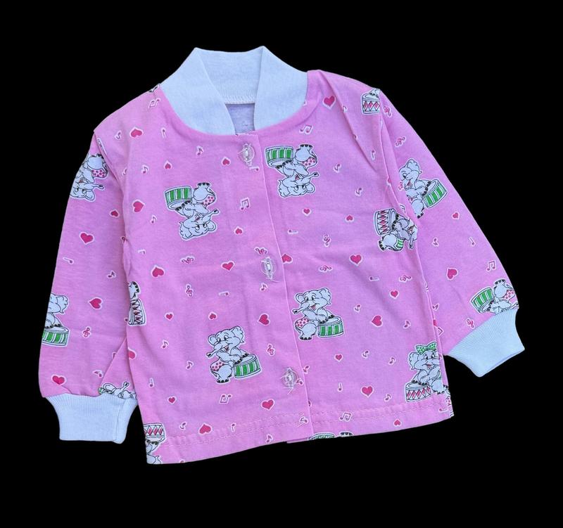 Трикотажная кофта для новорожденных подойдет на все сезоны года, для дома, прогулок, для сна. Зимой его можно носить под теплый ромпер, как нательная одежда. Кофта изготовлена из натурального хлопка. Шви внутренние, ручки открыты. На рукавах и горловине трикотажная манжета. Застегивается на пуговицы. Удобный и свободный пошив не сковывает движения ребенка. Замеры: 56 см (по набору 36): длина 25 см /рукав 20 см / в груди 42 см