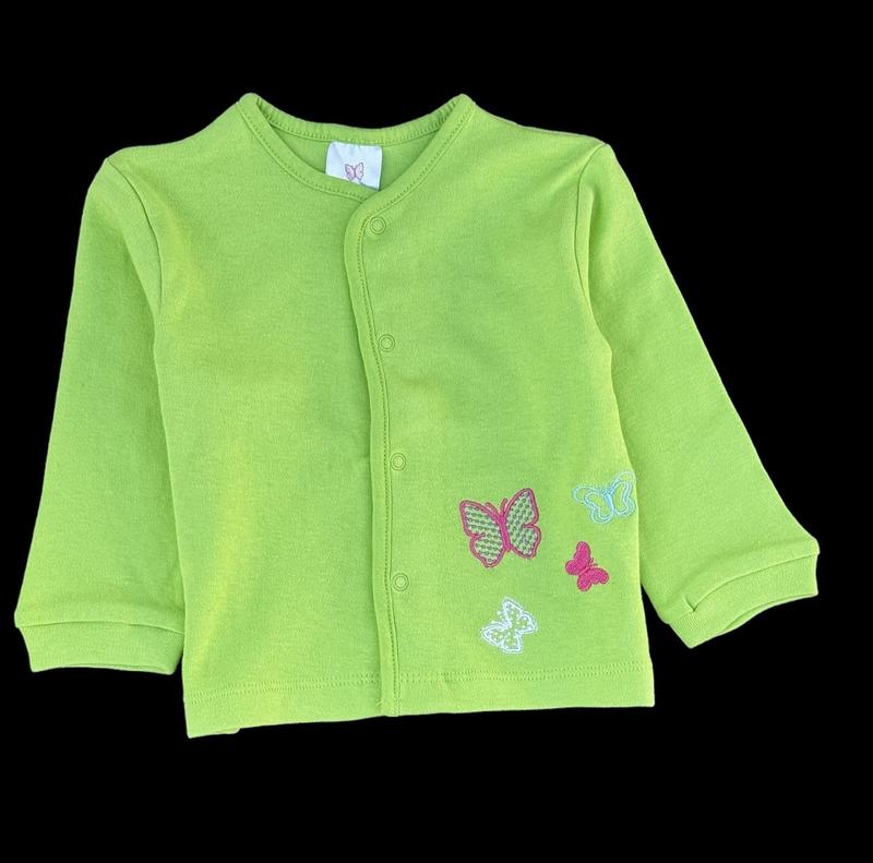 Трикотажная кофта для девочки.Застежка на кофточке в виде кнопок по всей длине позволяет легко и быстро одеть и раздеть ребенка. Удобный и свободный пошив не сковывает движения ребенка. Швы внутренние.Интерлок это мягкий, дышащий, безопасный и высококачественный хлопок.Кофточку легко стирать в стиральной машине, рекомендуем использовать деликатный режим и температуру не более 40 градусов.Трикотажная кофта для деток подойдет на все сезоны года, для дому, прогулянок, для сна. Зимой ее можно носить под теплый ромпер, как нательная одежда. Замеры: 68 см (по наборке 62/68 см): длина 30 см/рукав 25 см/обхват груди 56 см