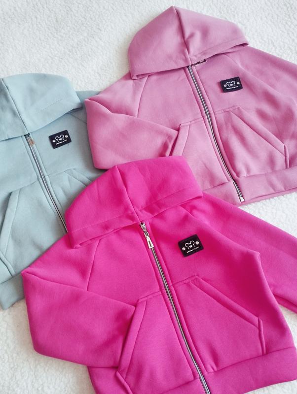 Комфортная теплая, удобная детская кофта на флисе для девочек. Кофтина застегивается на молнию, спереди два кармана. Ткань : турецкая трех нить начес. Размеры: 110-116 Замеры: рукав от горловины 110- 116- кофт. довж. 44/ полуобхв 43 / рук 52/ брюки длин 71/крок 49