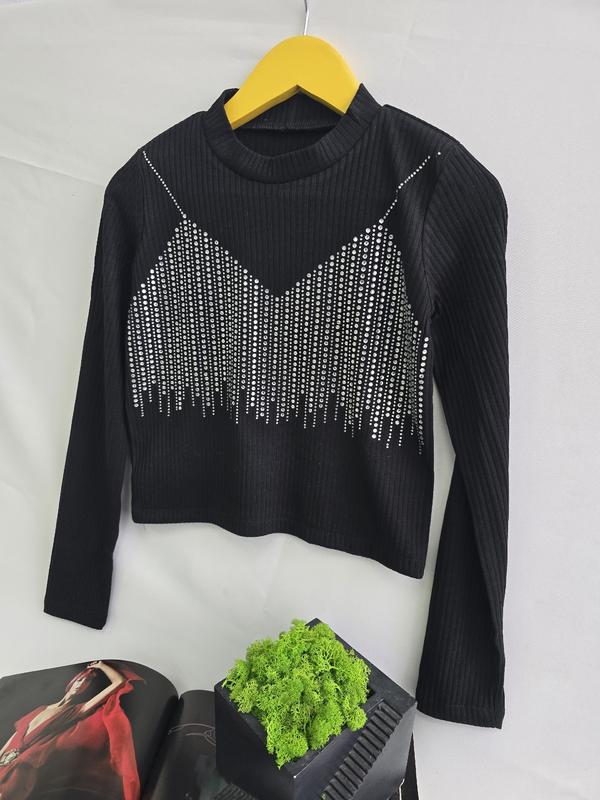 Лонг гольф в рубчик кофта реглан с камушками