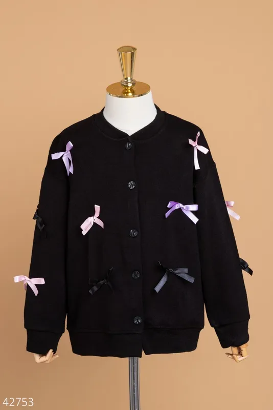 Кофта для девочек 0905 черная на пуговицах в бантик