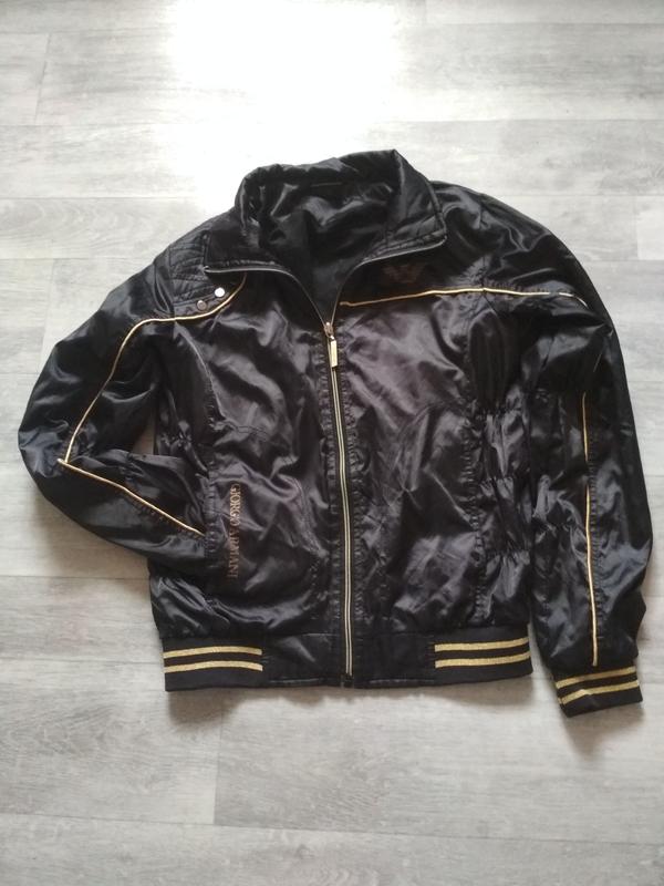 Спортивная кофта. Замеры: плечи 38 см, пог 47 см, длина по молнии 54 см, рукав 59 см. Есть резинка на рукавах и внизу, капюшон отсутствует.