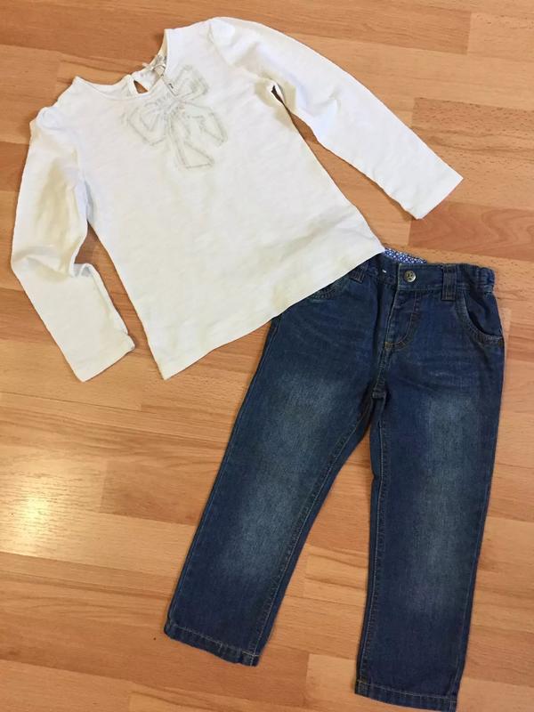 Коплектик ТРОХИ БОЛЬШЕМЕРИТ, на бирочке 2-3 роки. Регланчик Next, довжина 39 см, пог 30 см, рукав від плеча 39 см, стан нового. Джинсики INDIGO collection, довжина 53,5 см, крок 36 см, пот 23 см і ще трохи потягнуться, середньої щільності, отл. сост
