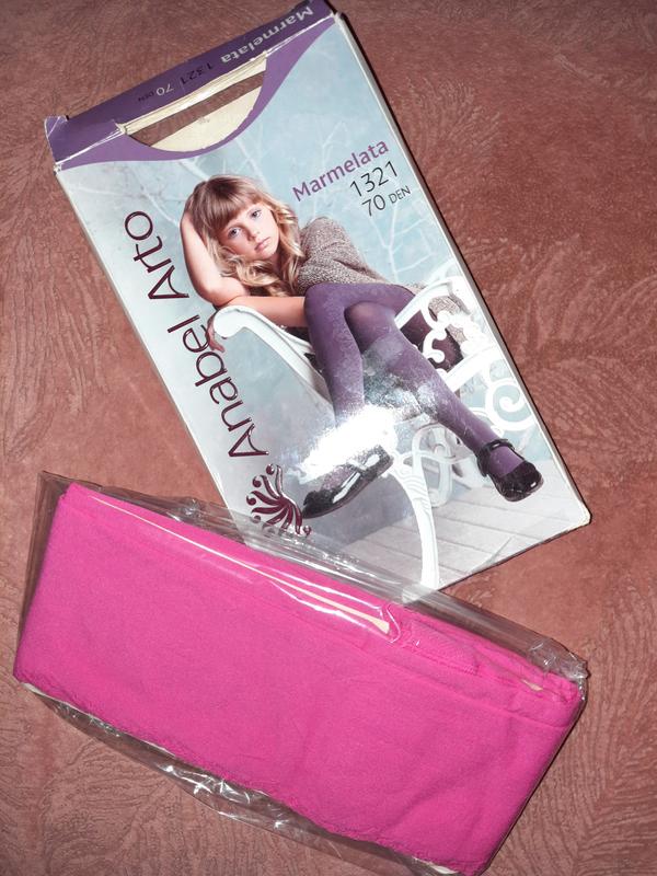 Колготи 70 ден з мікрофібри фірма Анабель Арто Україна на зріст 128-140, колір мармелад. Нові. Гладеньки, збоку йде низка квіткового принту. Ошатні, елегантні, міцні.