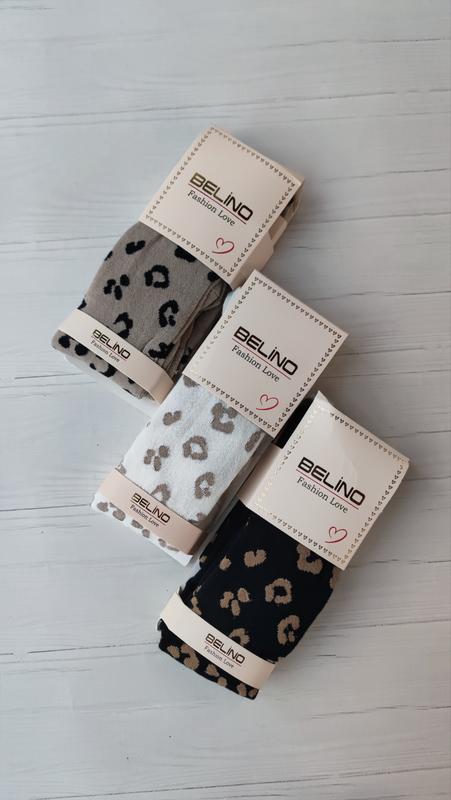 В наявності трикотажні колготи Belino (Туреччина) з стильним леопардовим принтом 85% бавовна, 10% поліамід, 5% еластан Є розм.: 1-2 р. 3-4 р. 5-6 р. 7-8 р. 9-10 р. 11-12 р. Ціна - 220 грн. розм. 11-12 р. - 240 грн.