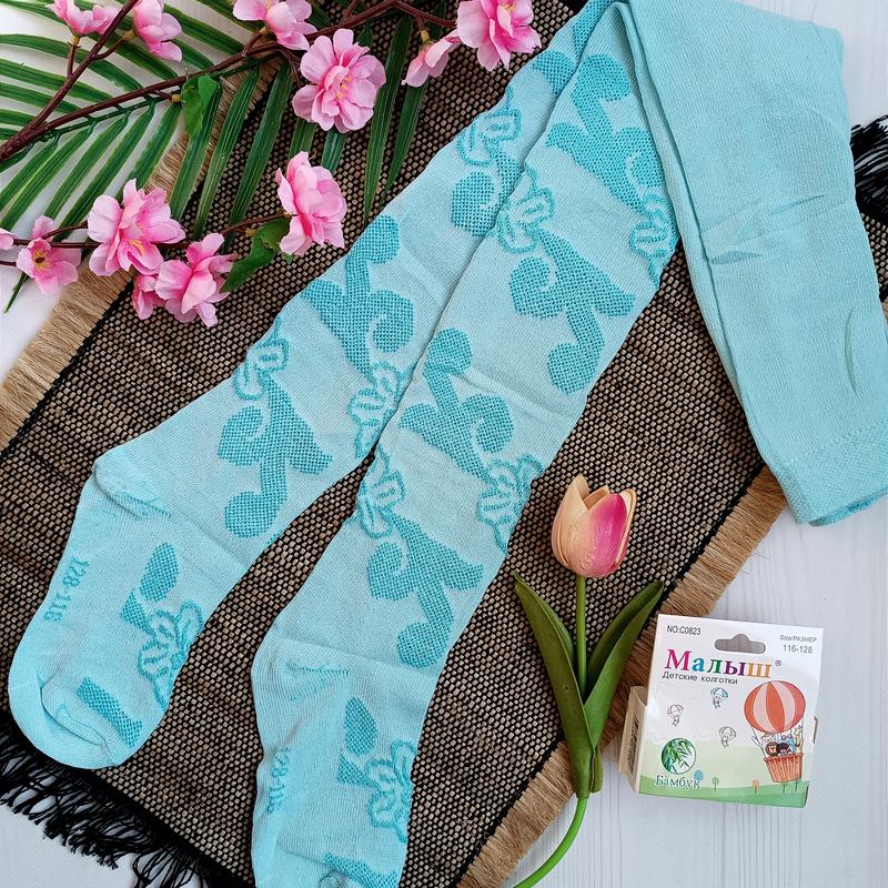 Бирюзовые ажурные колготы от ТМ Малыш 🌿БІРКА 116-128 (3 шт) Замеры: общая длина 74 см от пятки до верха 62 см крок 40-41 см Склад: 60% бамбук, 35% бавовна, 5% еластан Виробник Китай Отправка ежедневно любой транспортной компанией