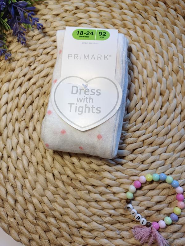Хлопковые колготки белые в розовый горох Primark ⭐ р.92 - на 18-24 месяца ⭐Состав на фото Новые, из стока. Стоимость указана за 1 пару