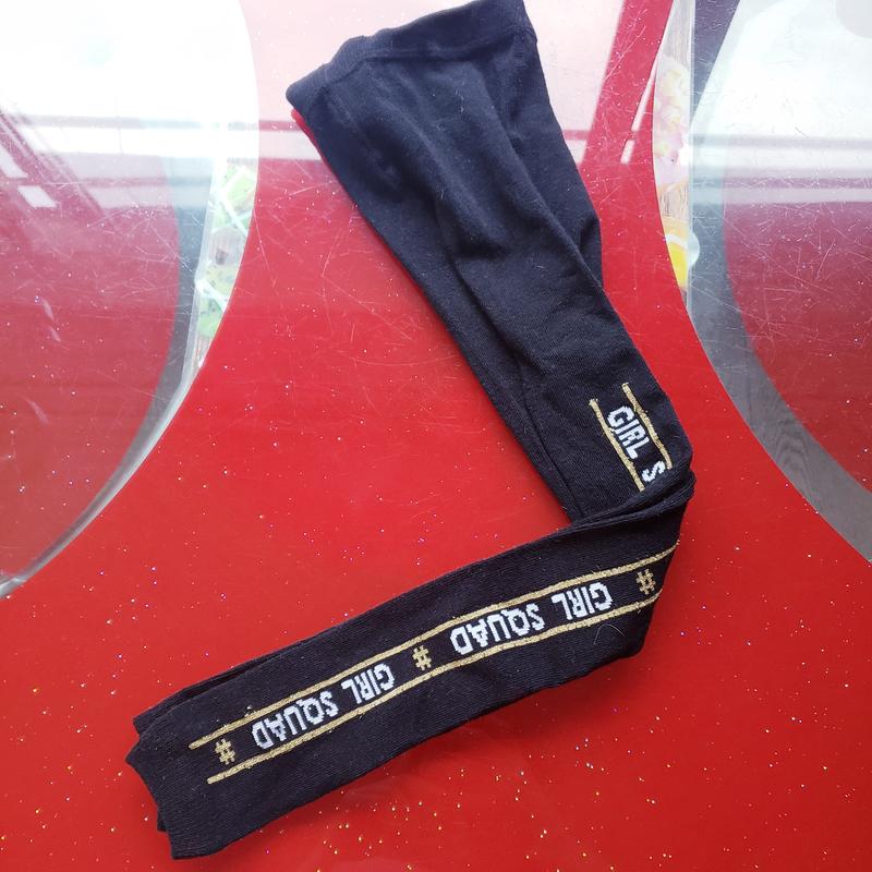 Maat лосины колготки без ступней девочке 4-5-6л 104-110-116см черные с блестящими золотыми лампасами и белыми надписями Girl squad длина 63, шаг 41, тянуться хорошо яновые, без бумажной бирки