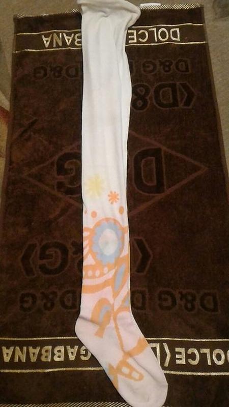 Колготы белые,не носились,долго лежали,требуют стирки или отбеливания,качество хорошее.Примерно на 5-6 лет ,замеряю,вышлю Еще одни колготы б.у,чистые,почти не носились,