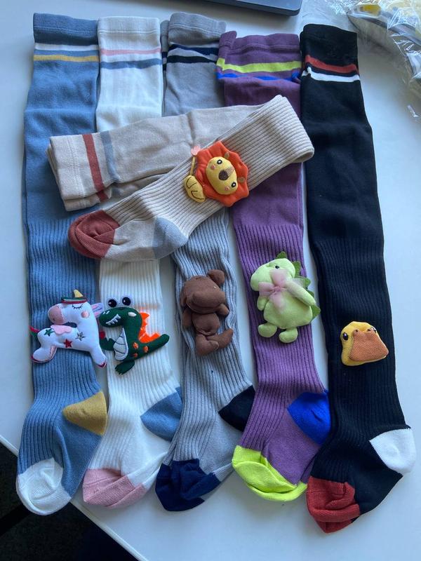 Колготки для детей в рубчик, игрушка на одной ножке - изюминка этих колготок! Отличное качество! Размер S 70-90см