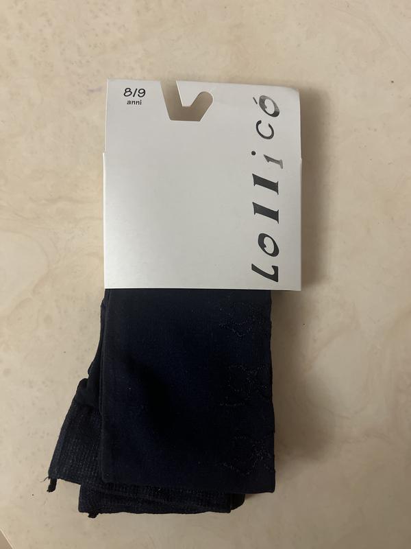 Новые колготы на девочку темно синего цвета сбоку красивый рисунок по ножке-бантике. Возраст 8/9 лет