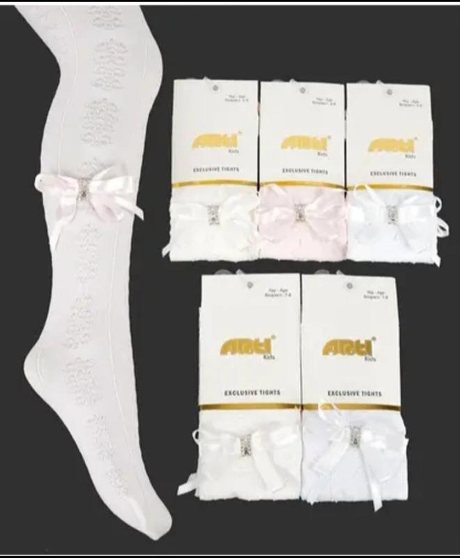 Колготки для дівчинки з бантиками і камінчиками. На 5,6років. Кольори молочні, білі.