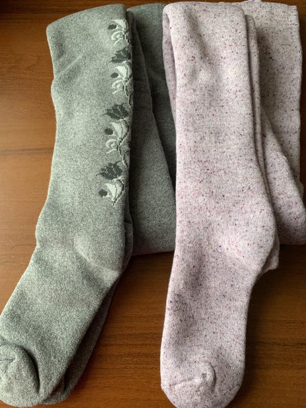 Колготки махрові для дівчинки виготовлені з натуральної бавовни , мʼякі та еластичні , теплі, добре тягнуться і гарно виглядають на ногах . Підійдуть для дівчинки на зріст 152 Довжина від талії до пʼяти 80 см .Ширина 60 см .Одні колготи темно сірого кольору збоку до колін візерунок , і ще меланж однотонний колір