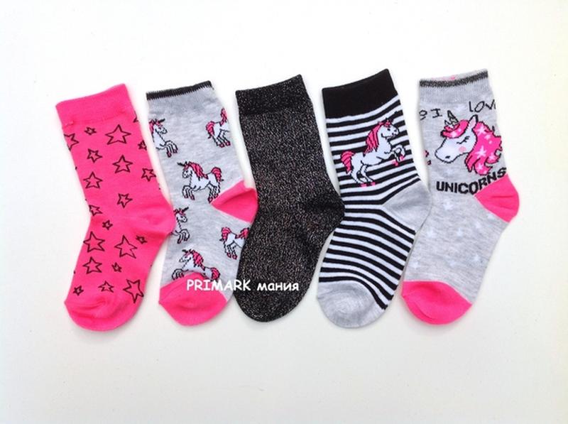 PRIMARK Трикотажные разноцветные носки с принтом "Единорог" Cредней плотности 5 штук в упаковке Одни носочки декорированы люрексом Размер 2-3 года (23-26 евр) Коттон микс Размеры полномерные. Выбирайте тот, что носит ребенок Весь ассортимент носков и колготок для девочек https://shafa.ua/member/primark_mania?category=90