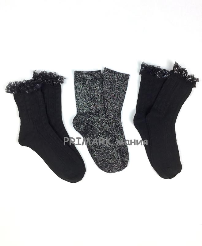 PRIMARK Трикотажные нарядные носки для девочки Декорированы оборками Одна пара полностью с люрексом, другие две пары декорированы люрексом на оборках Cредней плотности 3 пары в упаковке Размеры: 7-10 лет (31-36 евр), 11+ (37-40 евр) Коттон микс Размеры полномерные. Выбирайте тот, что носит ребенок Нижнее белье обмену и возврату не подлежит. Делайте выбор обдуманно Весь ассортимент носков и колготок для девочек https://shafa.ua/member/primark_mania?category=90