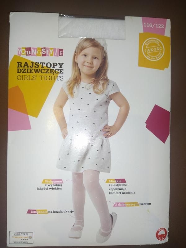 Капроновые колготы хорошего качества белые в горошек!! на рост 116-122