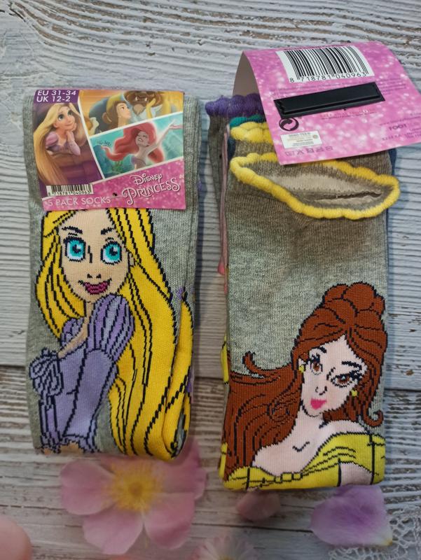 Комплект носков на девочку р. 31/34 на 6-8 лет. В комплекте 5 пар. Очень яркие, весёлые. Носки демисезонные!!! Все разные, с принцессами❤