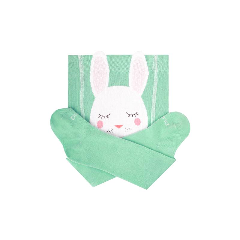 Детские хлопковые колготки бирюзового цвета с зайчиком. Размер 68-74.