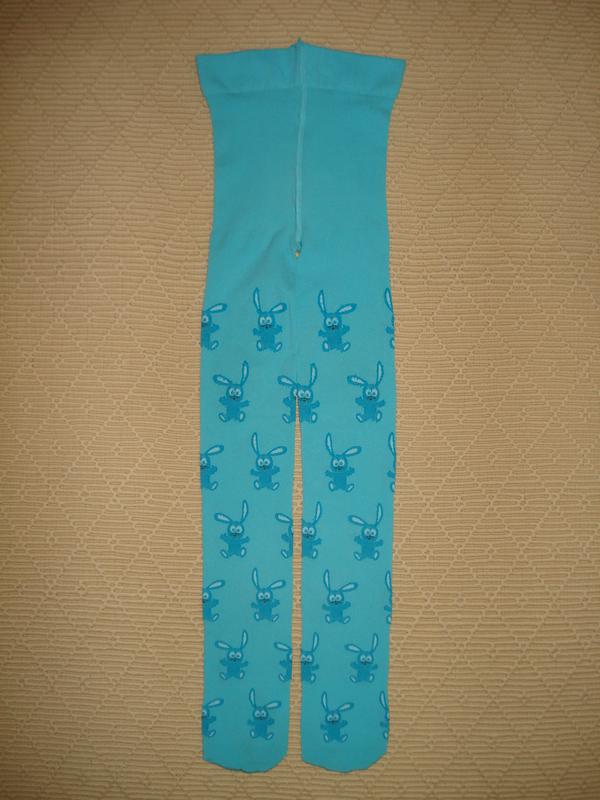 Колготы "Зайки" на девочку 2-3 года Цвет - бирюзовый. Сезон - весна, осень. Колготы в очень-очень хорошем состоянии. ЗАМЕРЫ: ПОТ в спокойном состоянии - 17,5 см. Длина по внутреннему шву - 42,5 см. Длина по внешнему шву - 58,5 см.