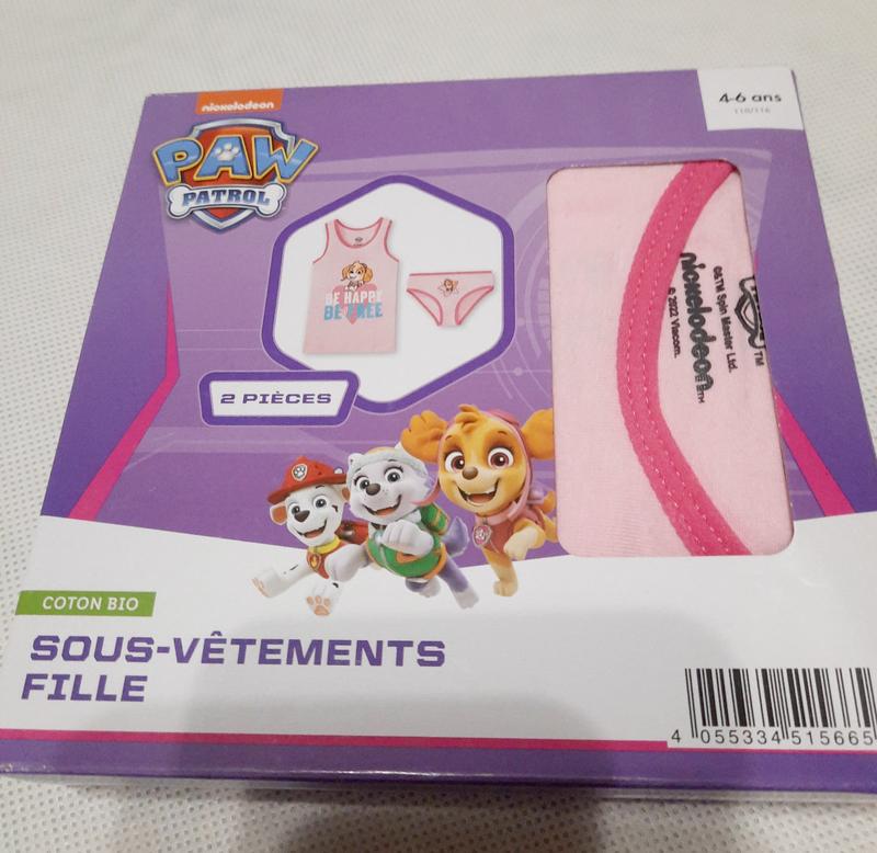 Комплект для девочки маечка с трусиках Paw Patrol. Размер 110/116 на 4- 6 лет. Хлопок. Трусики обхват по резиночке 42см, бок высота 5см, высота посадки сзади 20см. Маечка длина по спинке 44см, обхват груди 54см.