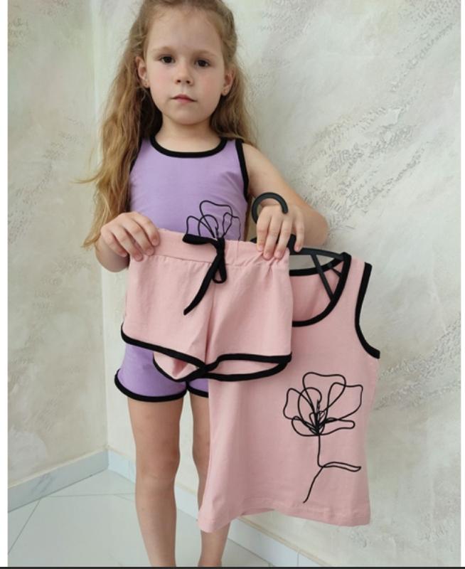 Комплект летний для девочки (майка детская + коротенькие шорты с карманами под широкую резинку, декорирован принтом ), легкий, классный комплект для девочки,подойдёт для деток от года до 4-5 лет. Пошит из тонкой ткани стрейч кулир, этот материал хорошо сохраняет форму, он является одной и самых популярных тканей для детской одежды, экологически безопасен, позволяет коже дышать. Сезон: лето Полотно: стрейч кулир