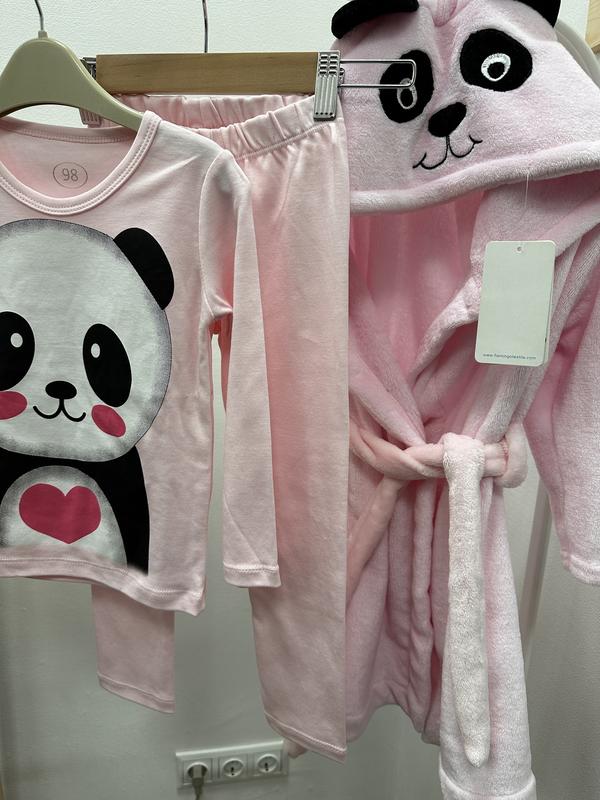 Комплект Панда состоит из халата махрового и трикотажной пижамы ТМ Фламинго Размер 98 (полномерный)