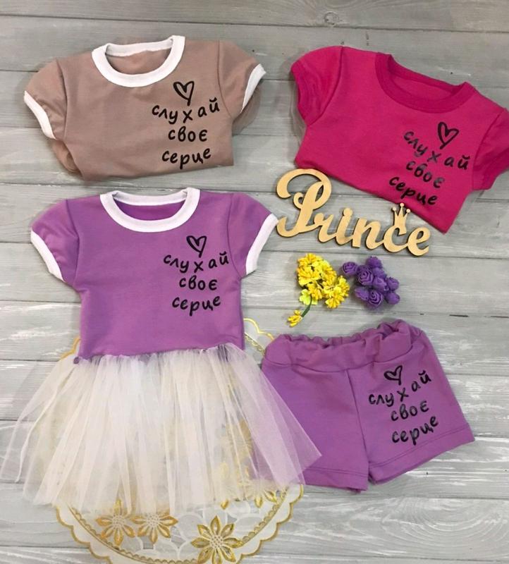Шортики + топ с фатином для девочки, Турецкая длинна и фатин Размеры 56, на рост 86-92 см 60, на рост 92-98см 64, на рост 98-104см 68, рост 104-110см
