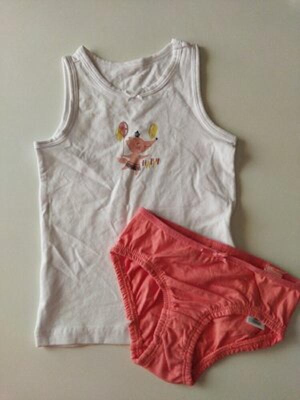 Комплект сборный, новейший. Майка размер 86/92 на 18-24 месяца. Трусики 98/104 на 2-4 года. Заміри на фото. 100% бавовна.