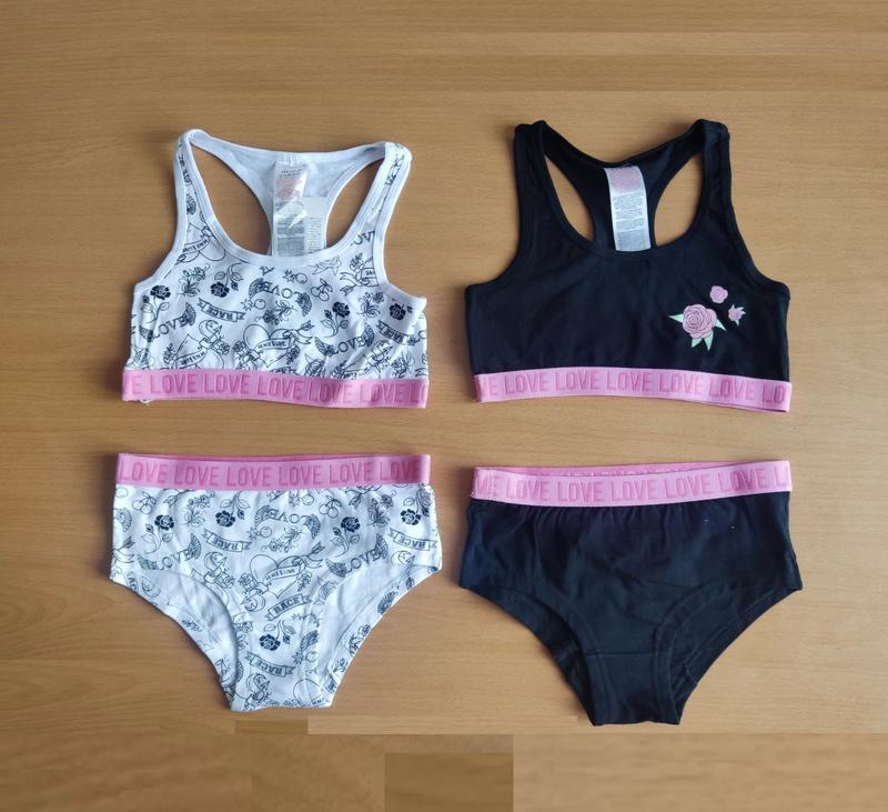 Качественное белье для девочки Ткань и мягкая ткань приятно прилегает к телу, не вызывает аллергических реакций. В комплекте 2 топа (белый и черный) и 2 трусиков шорт (белые и черные) Размеры 134-140, 146-152, 158-164 134-140 Ширина топов – 28 см Полуобхват по резинке трусов - 27 см Высота трусов – 21,5 см 146-152 Ширина топов – 29,5 см Полуобхват по резинке трусов - 29 см Высота трусов – 21,5 см 95% хлопок 5% эластан