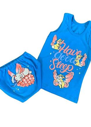 Ткань : кулир Состав : 100% х/б Декор : накат Маечка и трусики из яркого трикотажного полотна. Комплект украшен ярким принтом, от 1 года до 6 лет, цена- от 140( разница цены между размерами 10 гр)