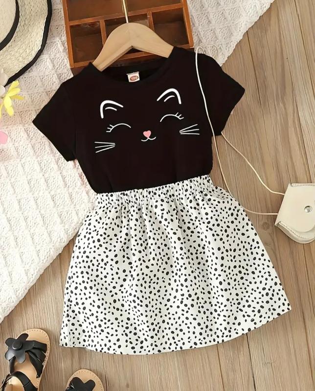 Комплект для девочки. Размер 110 (5-6 лет) Футболка: длина -41см, ширина - 31см. Юбка: длина - 30см, ширина - 23см по резинке.