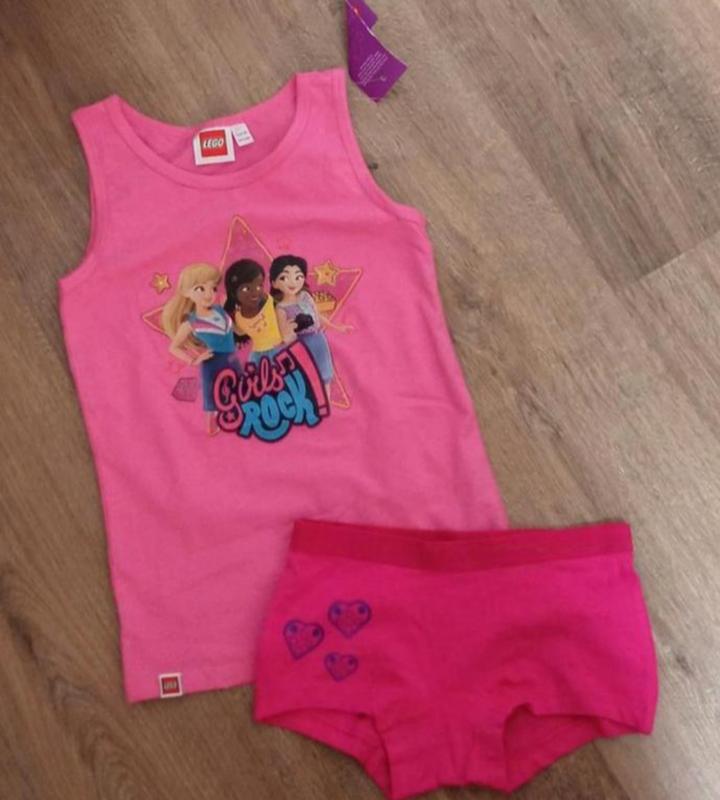 Хлопковый комплект на девочку из майки и трусиков шортиками в размере 122/128. Размер 122/128 на 6-8роков. длина -48см. дпг-29см. трусики талия по резинке -26см. посадка спереди -18
