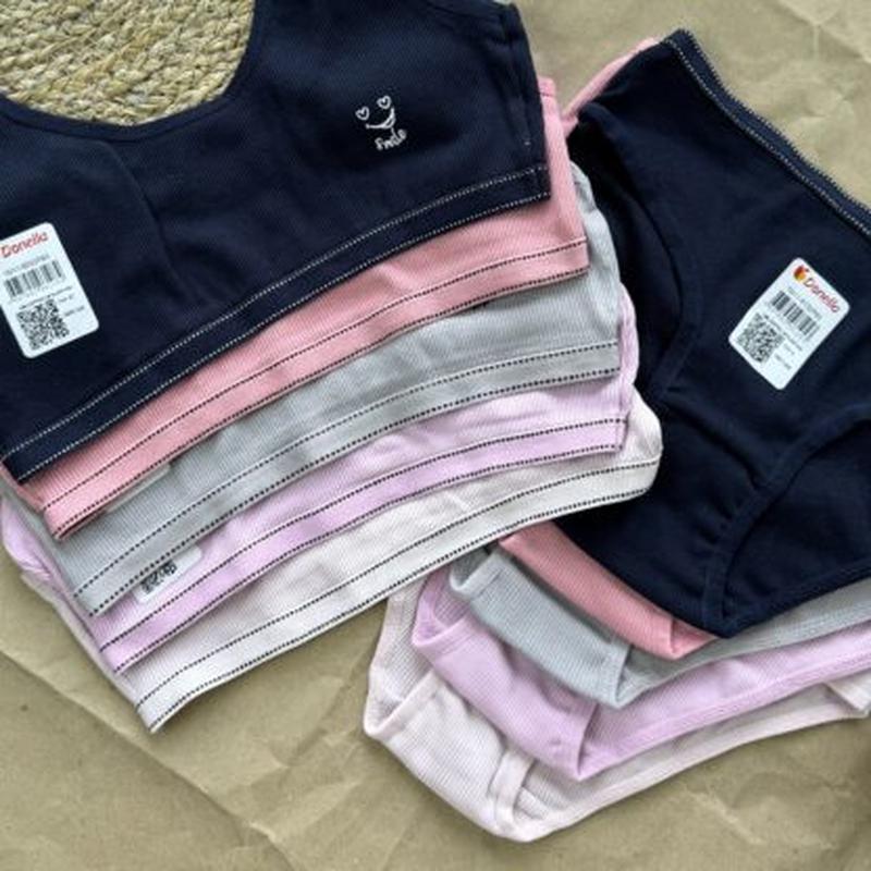 Набор топ и трусики от лучшего производителя нижнего белья из Турции! Donella- качество класса люкс! Не кашлатится, не теряет цвет при стирке. Трикотаж рубчик. В составе хлопок и эластан. Размеры: 10-11 лет 12-13 лет 14-15 лет Полномерные. Соответствуют возрасту указанного на бирке. Цвета ассорти (на выбор состава, можно указывать желаемое, все пожелания по возможности учитываются при упаковке)