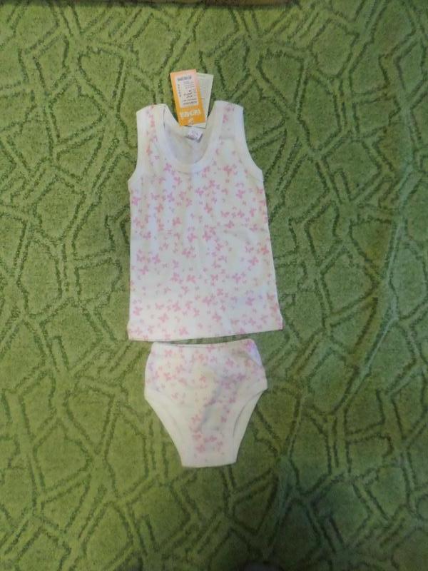 комплект ТМ Бемби на этикетке написано р.98, но большемерит майка-длинна 39см от подмышки до подмышки 23см. трусики ПОТ-17 см глубина - 23 см