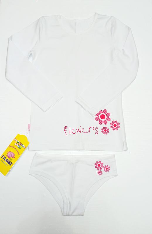 Габби. Комплект белья для девочки *Цветы в горошек* р.110. Ткань - стрейч-кулир (95% хлопок, 5% эластан). Для экономии при пересылке смотрите все мои объявления. 100% предоплата на карту ПриватБанка Монобанк Пумб или безопасная оплата от Шафа Отправка за счёт покупателя Укрпочта Джастин Новая Почта