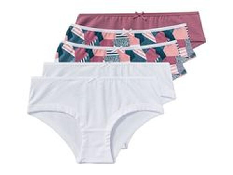 LIDL - европейское качество! Мультипаки трусиков для девочек Pepperts и Alive, привезены из Германии. Шикарного качества, нежные, приятные к телу и комфортные из натурального хлопка. Отлично носятся и не теряют форму. Международный стандарт качества OEKO-TEX Standard 100 - безопасный, износостойкий текстиль, которому можно доверять. В наличии: Трусики модель Hipsters 5 шт. в наборе от Pepperts размер 122-128 на 6-8 лет.