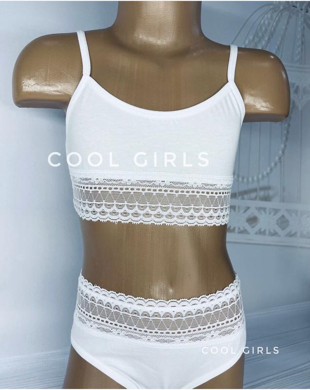 Бавовняні топіки для дівчаток з круживом ТМ Donella. 95% бавовна, 5% еластан. Доступні розміра: 🎈6-7р. (122-128). 🎈8-9р. (134-140). 🎈10-11р. (146-152). 🎈12-13р. (152-158). 🎈14-15р. (158-164). Виробник Туреччина. Якість бомбезна👍🏼👍🏼👍🏼. 💲Топ ціна 90 грн. 💲 Набір топ+труси 170 грн. Круживо може відрізнятися від того, що на фото, кожна партія інший малюнок.